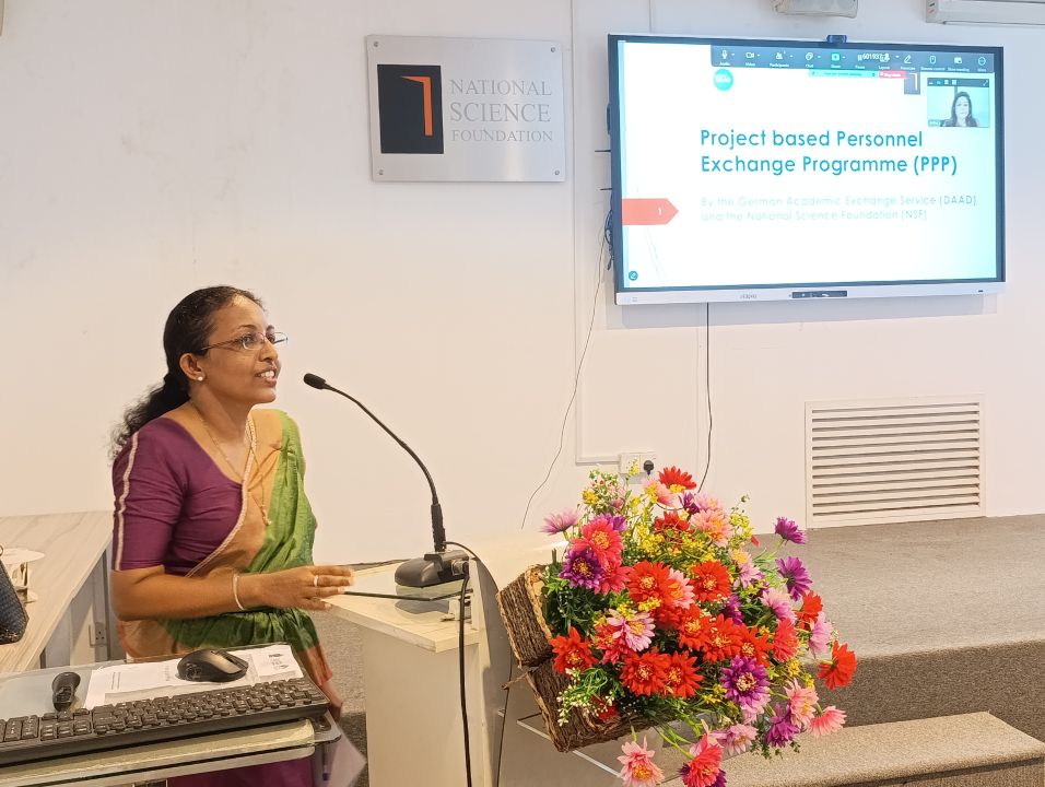 Ms Shikha Sinha, Senior Advisor – International Cooperation, DAAD Regional Office New Delhi, India joined the session online and delivered some remarks while Ms Nimaya Manudewa, Regional Officer, DAAD Information Centre, Colombo joined same and delivered a presentation on the opportunities for Sri Lankan students and researchers through DAAD. Dr Sudath Samaraweera, Chairman NSF delivered the welcome and opening remarks. The joint call for proposals was opened on 01st of October and will end on 28th November, 2025.